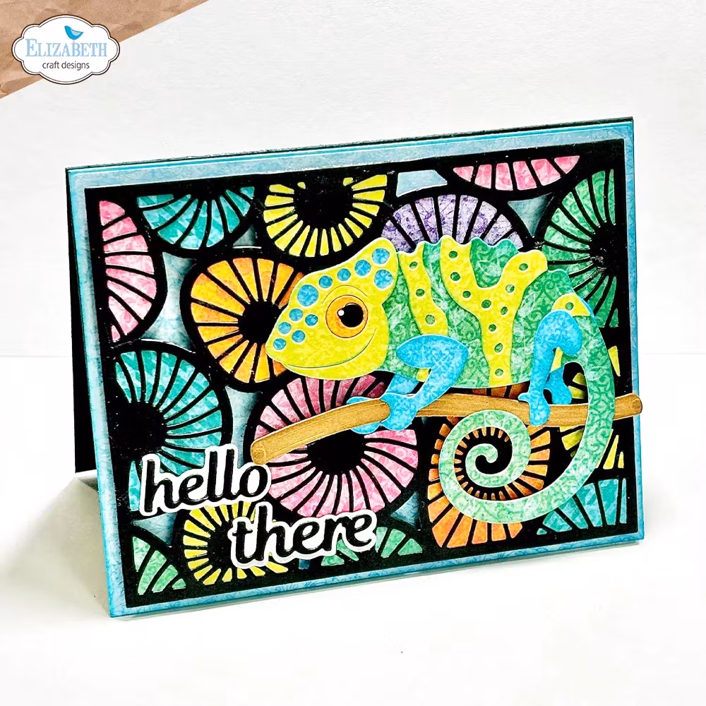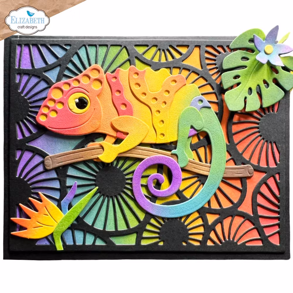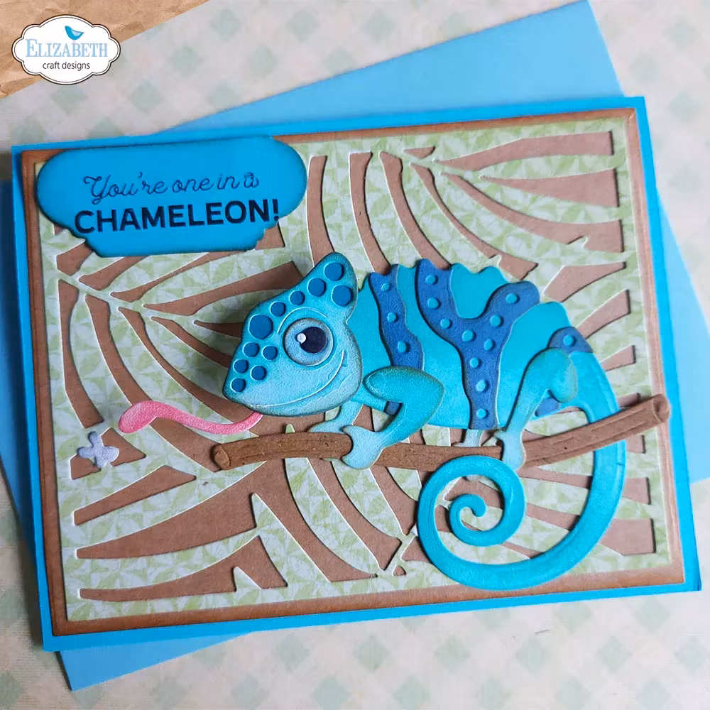 Elizabeth Craft Designs dies. Spion The Chameleon från Jungle Party. Designad av Cute & Whimsical. Ungefärliga mått: Största formstorlek: 2,7" x 3" (6,8 x 7,7 cm) - 7 dies.