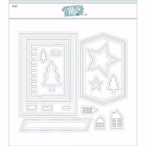 Sketches 2 från Made With Love innehåller 17 olika dies, inklusive 2 rektanglar med sömmar, en etikett med ram, 3 små hus, 2 små fotohörn och en hål- och hålför